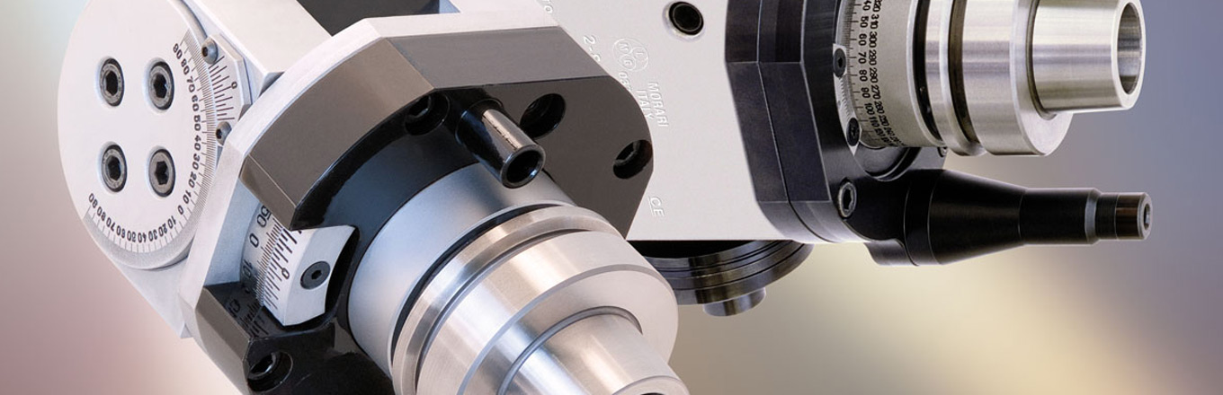 MORARI ofrece una gama de cabezales orientables de alta velocidad aprovechando la máxima velocidad del cabezal de la máquina. Se emplean para mecanizados ligeros: grafito, materiales plásticos, madera...